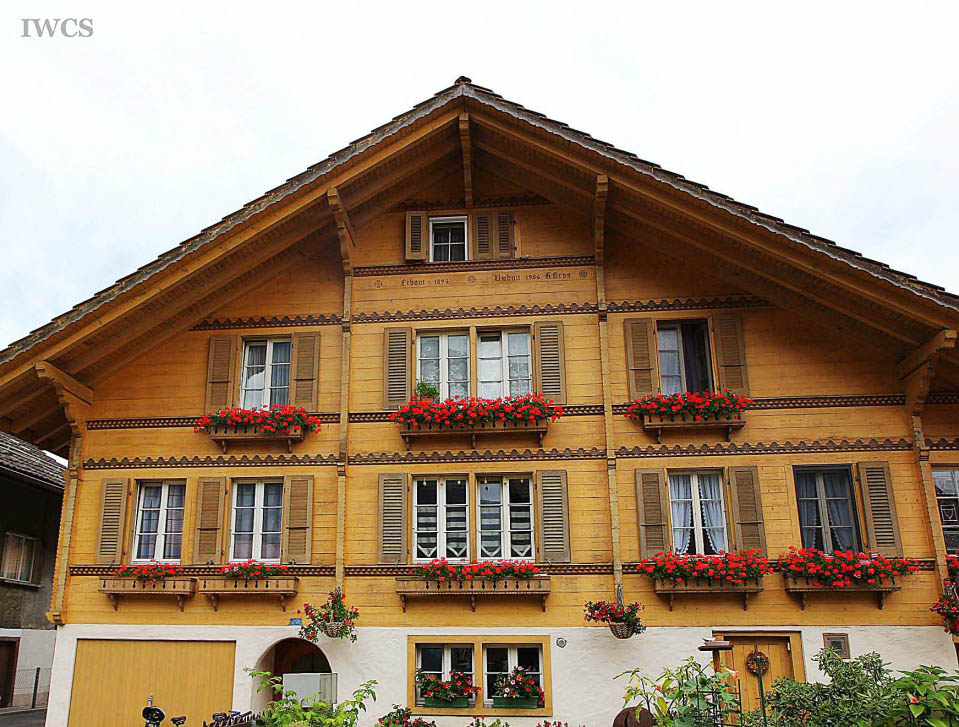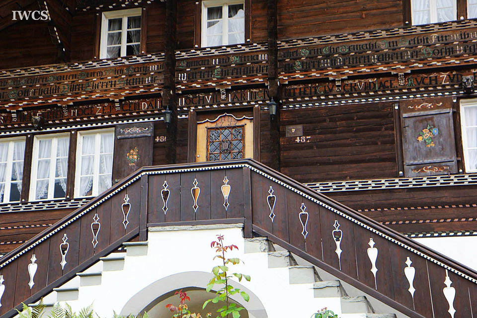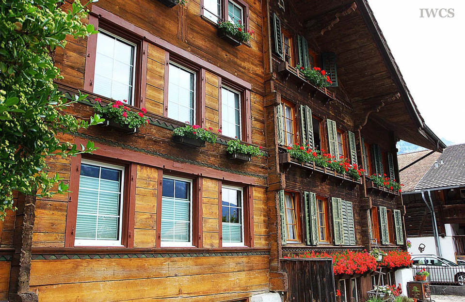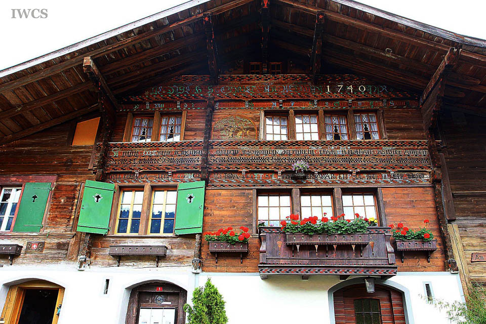 Many of these wooden dwellings had expanded to house the enlarged family. The original structure and the expanded parts of the house could be differentiated according to the doorway or color of paint. These well-preserved wooden houses in Bönigen are decorated with colorful patterns and images, plus biblical quotes in Gothic and Roman letters that inscribed on the exterior wall of the building. Visitors could easily perceive and understand the value of these cultural legacies.