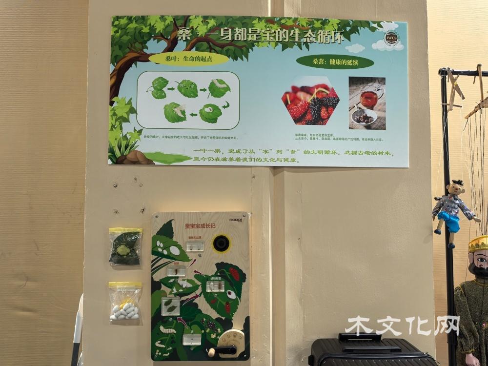 为让观众多维度理解树木与文明的共生关系,展览设置三大展板体验。“对话森林展示区”的四块科普展板串联树木守护生态、滋养生活、支撑产业的故事,传递人与自然和谐共生理念,搭配桂花树苗实景,让观众触摸感知森林的核心生态价值。“种子成长科技互动区”通过科技手段可视化豌豆、花生种子萌发过程,传递“生命教育”的启蒙意义。“桑文明展示区”呈现桑树从饲蚕、结果到融入中华衣食文明的历程,展现树木对文化的塑造。