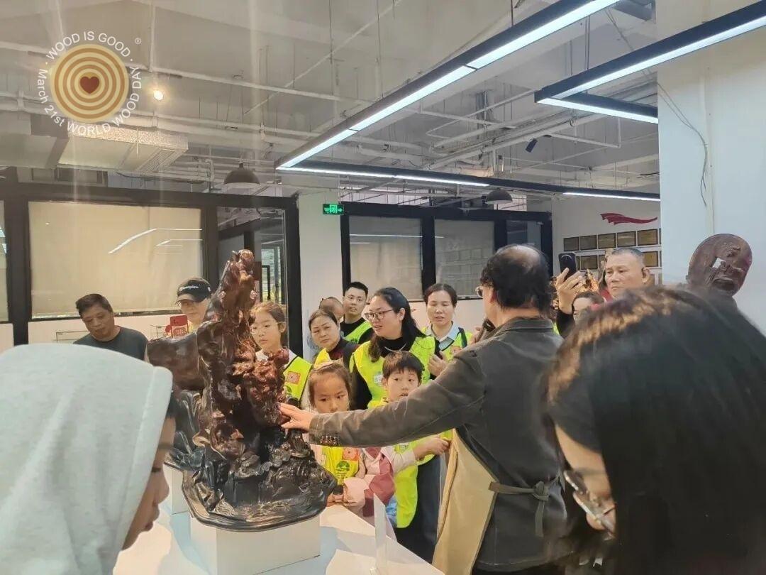 “原来木头不只是材料,它有自己的‘生命故事’!”在基地的展示区,孩子们围在王大师身边,好奇地看着不同树种的木头。不同于课堂上的书本知识,活动将 “木材科普” 变成了可近距离感受的体验。这种 “从自然中来,到文明中去”的设计,正是对“木载文明”的诠释——让孩子在与真实材料的互动中,建立对自然、对历史的敬畏。正如 “2026 年世界木材日”主题所言,“木”是文明的载体,贯穿建筑、器物、艺术与生活,而这里的每一块木头,都成了连接“森林-工艺- 明”的纽带。