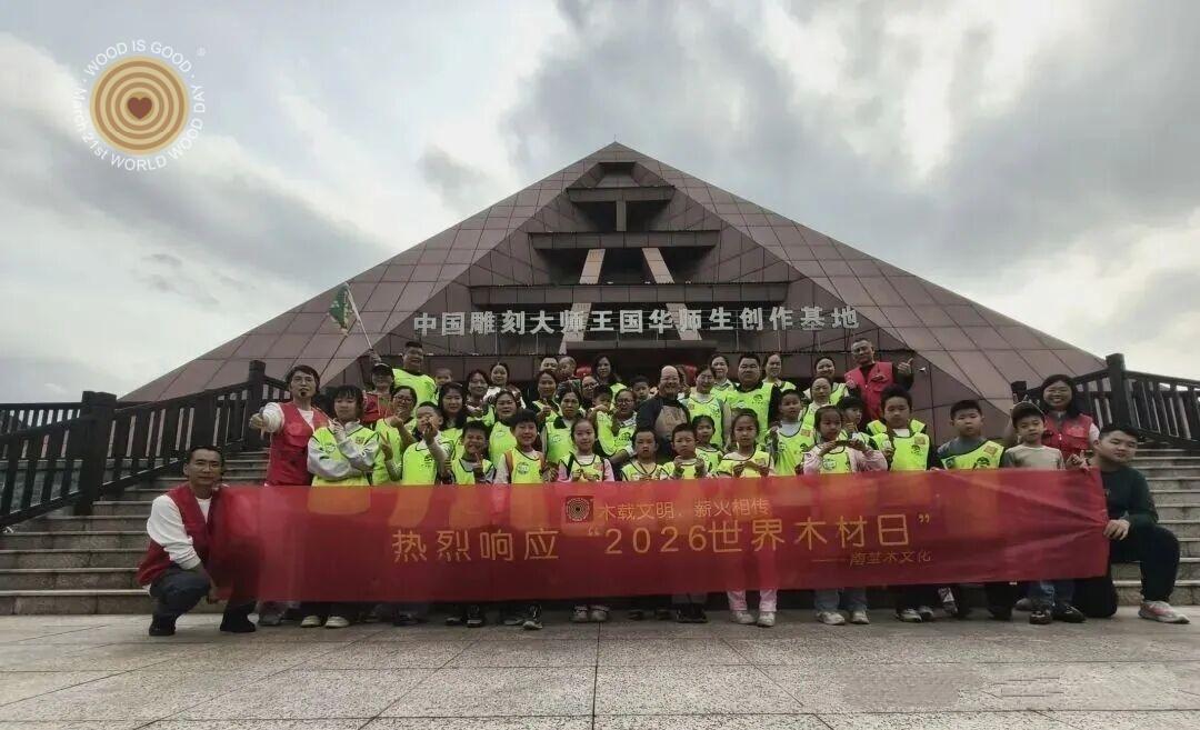 当春日的阳光洒满木雕基地,锯子与木料的摩擦声、孩子的欢笑声与木屑的清香交织在一起,构成了一幅生动的画面。正值“世界木材日”,室外境教的亲子家庭们走进位于南康的中国木雕大师王国华师生创作基地,在木头的纹理间,开启了一场关于创造、传承与陪伴的奇妙旅程。这不仅是一次手工体验,更是对“2026世界木材日”“木载文明,薪火相传” 这一年度主题的生动实践。