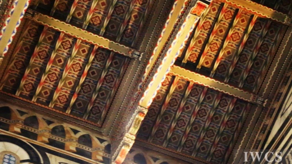 San Miniato al Monte is a basilica located in Florence, Italy. The basilica is situated atop one of the highest points in the city, and characterized and constructed in the classic Tuscan Romanesque architectural style. The wooden roof truss is painted with bountiful colors and decorated with adornments, and there’s an uncommon walkway built within the roof truss for people to decorate the roof truss. In addition, the wooden music stand for the choir was exquisitely made in approximately 1420.