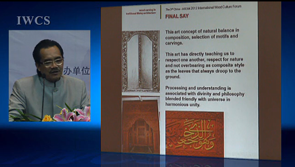 传统马来西亚建筑中木雕的概念和理念 2013/03/1312,572 活动名称:第三届中国—东盟国际木文化论坛 活动时间:2012年11月16日 活动地点:广西·南宁 国际会展中心 报告嘉宾:Mastor Surat 马来西亚国民大学高级学术研究员 责任编辑:iwcs25H