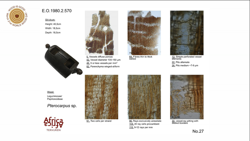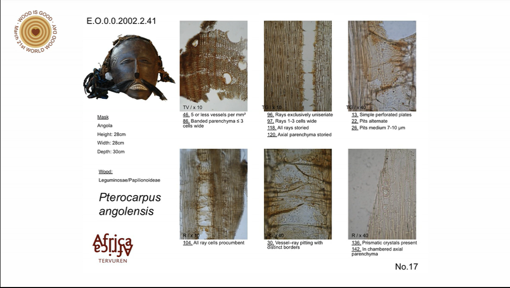 The species diversity of trees in Central Africa is particularly high and for this reason also the wood ethnographic objects are quite diverse. In general, the choice of wood depends on locally available species, technical common sense or religious considerations, as is the case for masks made of wood from the sacred tali tree (Erythrophleum suaveolens) which is very difficult to carve.
