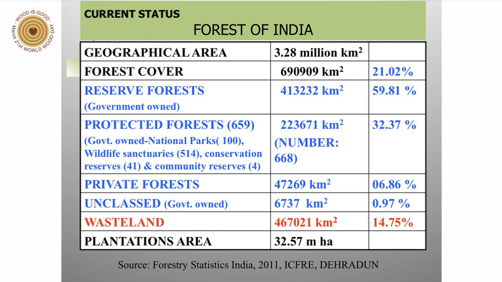 In India, presently the demand of wood is much more than the supply, therefore wood substitutes and imported woods are extensively utilized. Although these imports have reduced lot of pressure on our natural forests, the timber quality of these imported woods and pests traded along with them are posing severe problems.