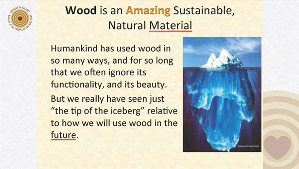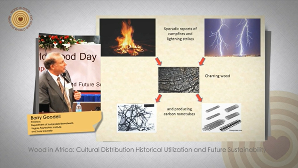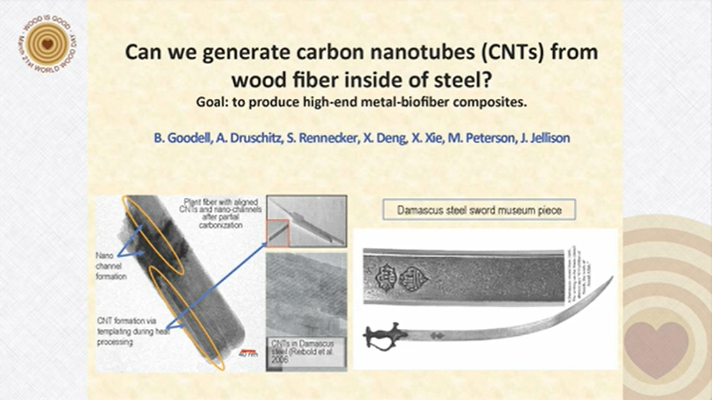 Wood is an amazingmaterial. We already know much about its properties and its versatility for usein many applications. In reality however, we have just have seen the “tip ofthe iceberg” with regard to the many ways wood will be used in the future. Woodis used in many functional and artistic ways as a solid product. These useswill continue to expand as creative minds find new ways to transform solid woodinto useful and visually esthetic products. The use of wood will alsoexpand as we find new ways to convert wood strands and fiber into composites,produced solely from wood and adhesive or by bonding wood to other materials. Many advanced products, such as the floor ofthe Corvette sports car are made from advanced wood hybrid composites becauseof the unique properties that wood imparts when combined with other materials. Today,as we learn more about the nano-scale properties of cellulose and lignin, it isopening up our thinking to new ways that we can use wood for a variety offuture products. On otherfronts, wood and other lignocellulosic materials have always been used as asource of energy - stored energy from the sun - released when we burn solidwood. Today though, we can also think of wood as a source of liquid fuels.Conversion of wood by bacteria, fungi and algae to a variety of fuels will helpus to reduce our reliance on fossil fuels. Similarly, bioconversion processesare being developed to convert the lignin residues from biomass into usefulchemicals and feedstocks for a variety of biopolymer plastics and adhesives.Science is continually revealing new and exciting things about wood. Newadvances include knowledge about the mechanisms that fungi, bacteria, insectsand even marine borers use to transform and degrade wood, through to thediscovery of new structures within the wood cell that never before have beenvisualized. Scientists have even begun to unravel the ancient mystery of woodwas used to produce Damascus steel, a secret lost for centuries and only nowbeing re-discovered with new findings of how the wood was reformed into carbonnanotubes within the steel! This talk will discuss some of these findings.Although wood has many uses, and more are being discovered every day, we mustcontinue to understand and appreciate the role that wood and its precursormaterials have played over the millennia in carbon sequestration and carboncycling. Exploring these new uses for wood in solid products, hybridcomposites, chemical feedstocks, and energy sources are the key to helping theworld move closer to becoming a more carbon-neutral and sustainable planet.