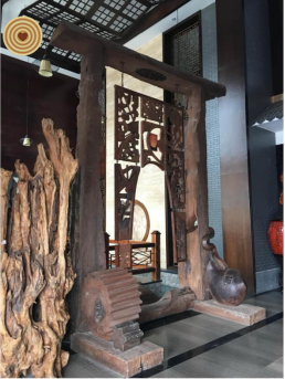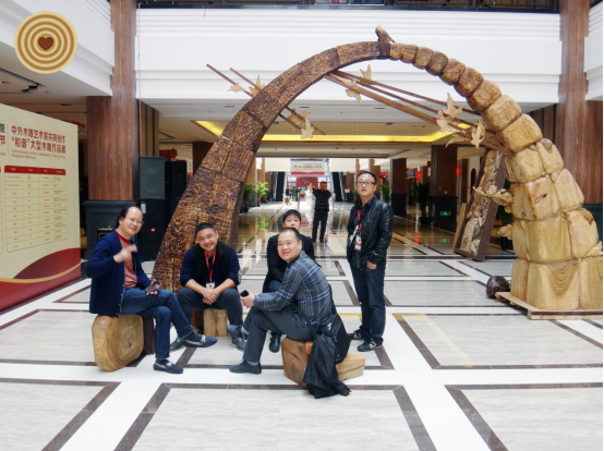 此次提议创作的门寓意“艺术之门”,既代表中外艺术家文化艺术交流之门,又象征中外艺术家共创和谐之路的开启之门;既体现了中外文化的差异,又融合了各自的精华。最后,项目组成员一致同意创作“艺术之门”的提议,讨论决定了门的尺寸后(宽×高=5×4m),大型木雕公共艺术品创作正式开始。