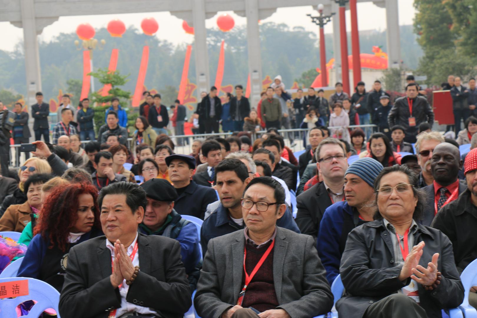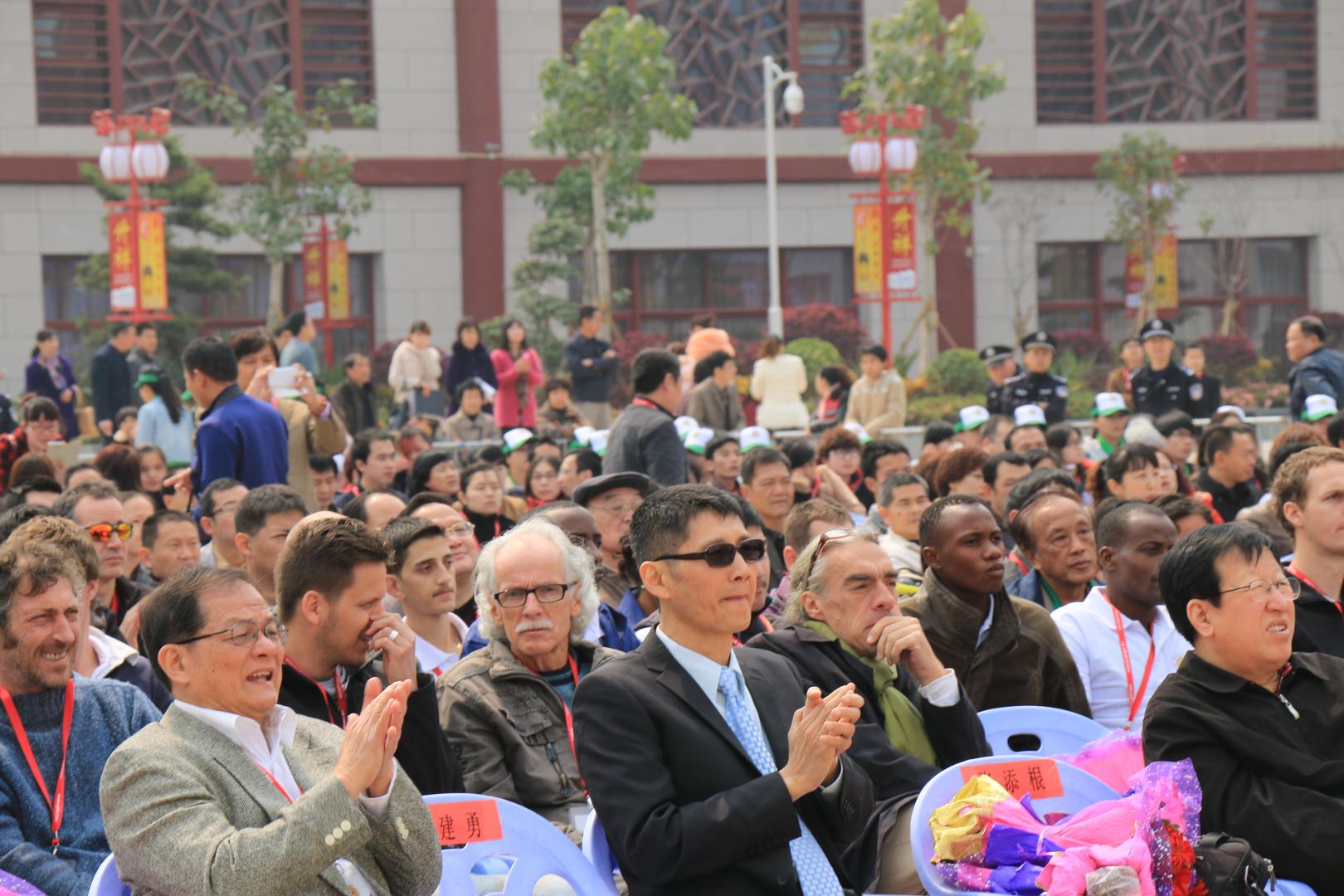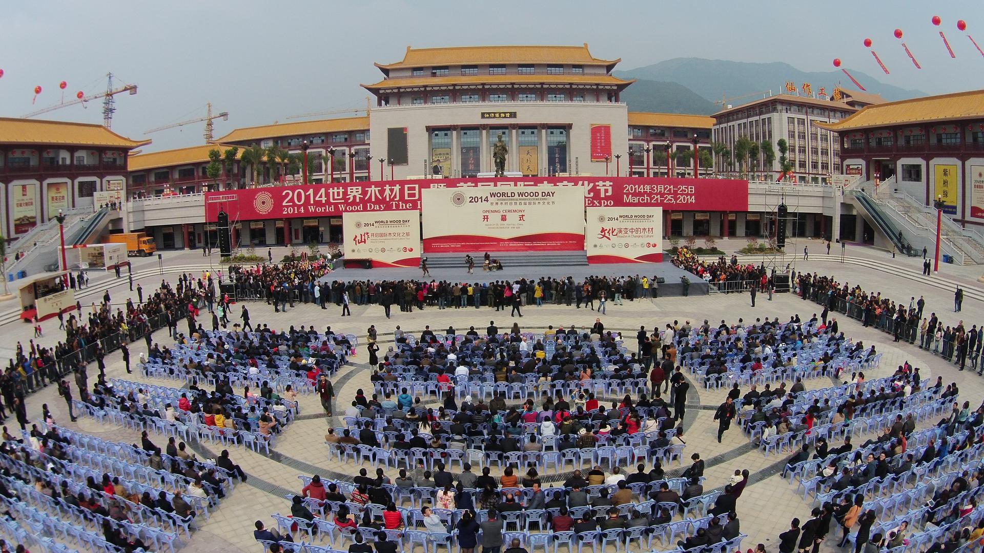 2014世界木材日暨首届国际木文化节于3月21日在福建仙游古典工艺博览城正式开幕,图为开幕式现场, 众多观众聚集在舞台前。