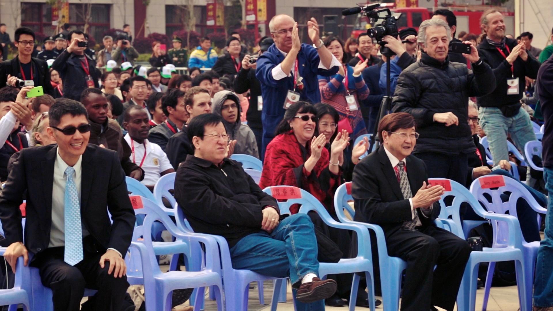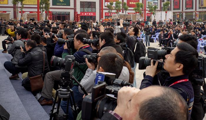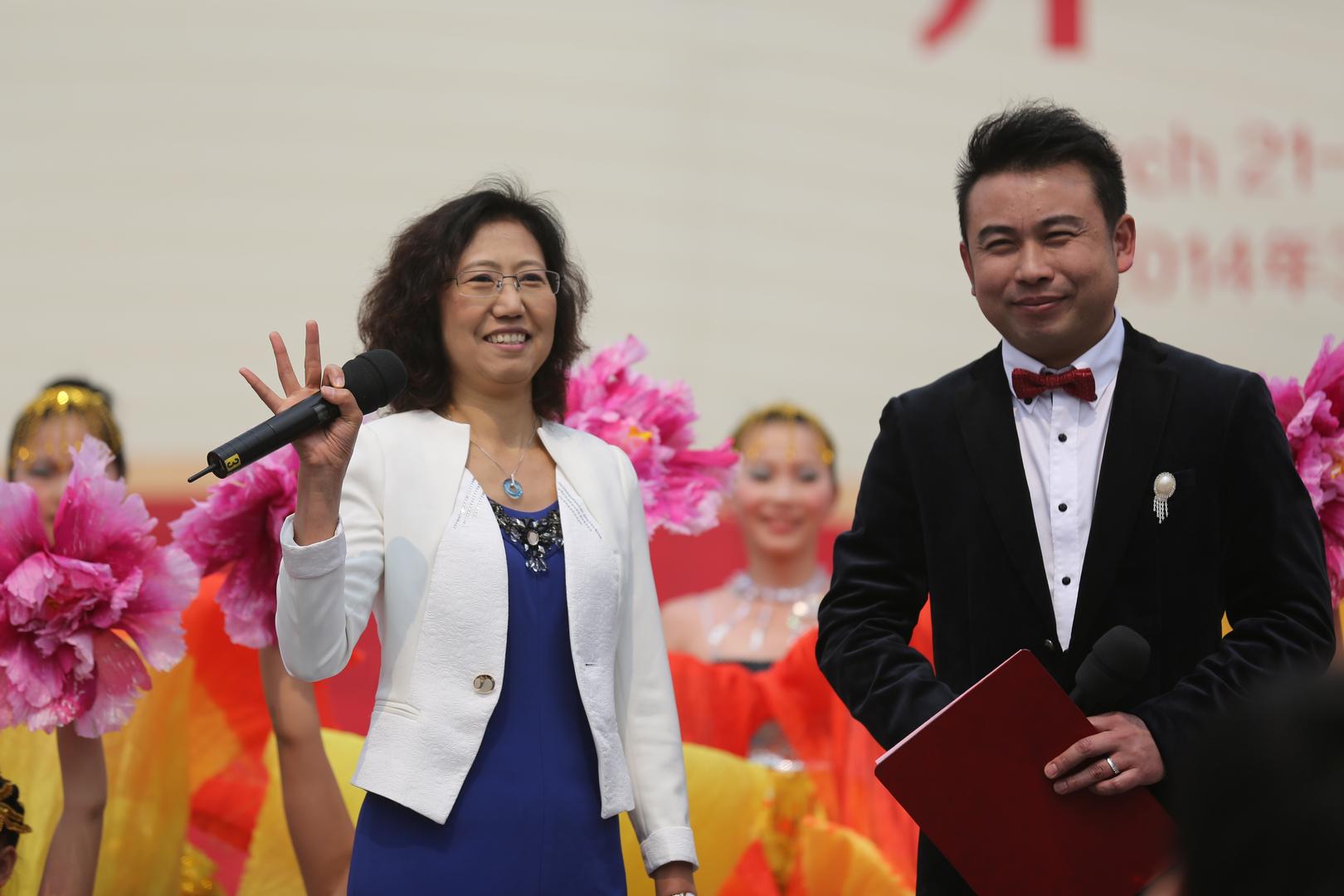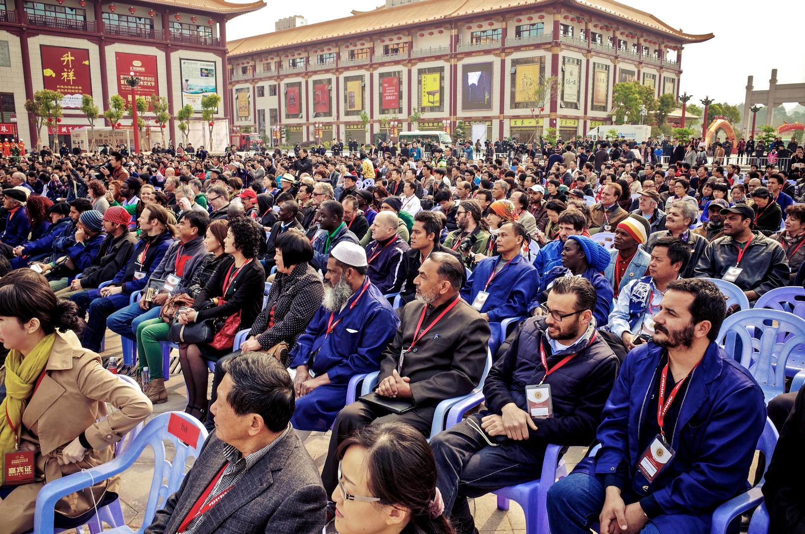 2014世界木材日暨首届国际木文化节于3月21日在福建仙游古典工艺博览城正式开幕,图为开幕式现场, 众多观众聚集在舞台前。
