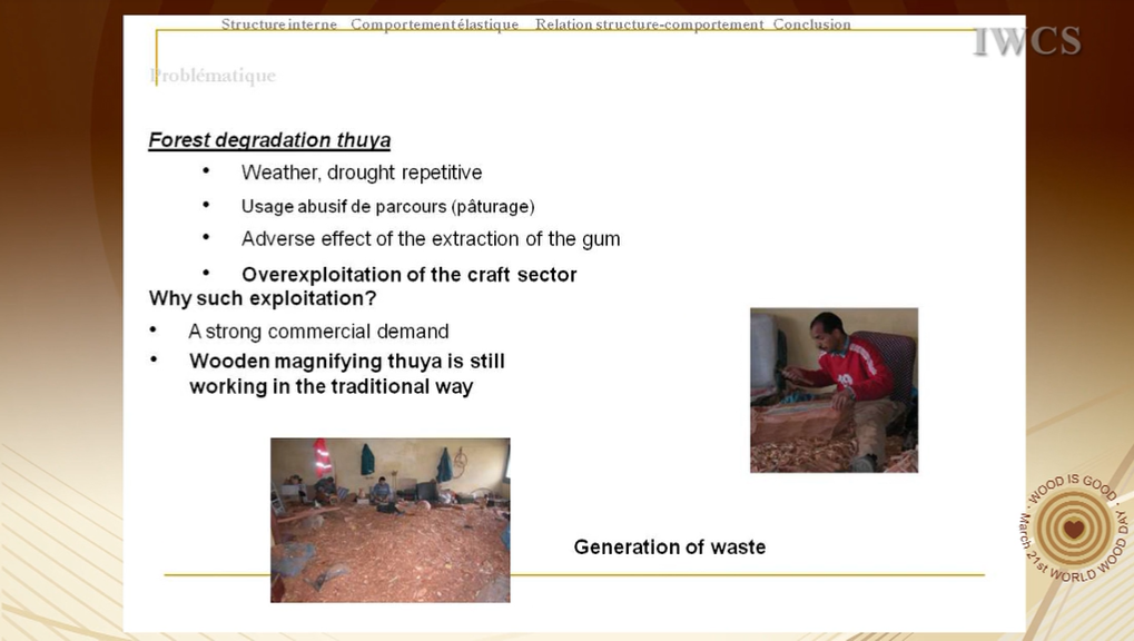 The Thuya is a tree of the coniferous family, close to cedar, which grows only in Morocco. Special and luxurious cedar, hardwood is a recognizable by its dark red speckled with clusters of small dark brown spot and sometimes reasons veins golden color. Quality for this wood is its hardness, rarity, it has hundreds of textures, luxury appearance, the beautiful polished it manifests after polishing.