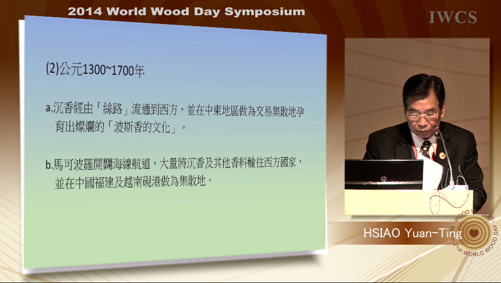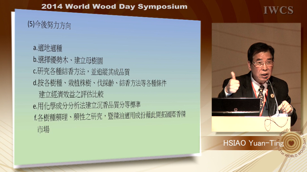 Mr. HSIAO worked at the Council of Agriculture Executive Yuan, Forestry Bureau, Taiwan from 1966 through 1974. During his service period at the Bureau, he passed both the Civil Service 1st-Level Senior Examination and the Examination of Forestry Technician in 1971. After the years of working for the government, he devoted himself to forest exploitation two years in Indonesia starting from 1974. Until the present, he has engaged in agarwood and sandalwood industry since 1976, which has brought him the invaluable travel experience in all the countries where he could explore the ecology of agarwood and sandalwood. His practical profession earned him the Award of Outstanding Enterprise Manager in 1999. In 2010, the speaker demonstrated his entire specialized repository into the book "Agarwood--Mysterious Substance of Energy" in Taiwan. Three years later, Sanjin Publisher received authorization to release it into China's publication market. Furthermore, he was invited to deliver talks on agarwood related topics in the Convention on International Trade in Endangered Species of Wild Flora and Fauna in 2011 and the International Conference of International Wood Culture Society in the following year. In 2013, he was selected as one of the best ten lecturers by The Industrial Technology Research Institute. He is a lecturer of agarwood workshops at the Institute.