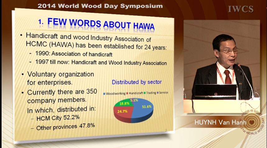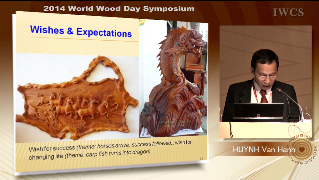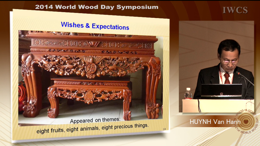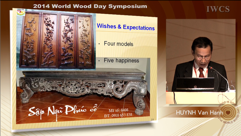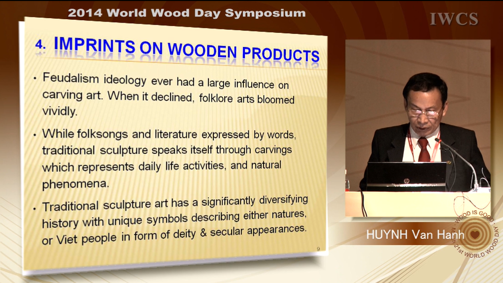 Master – Engr. HUYNH VAN HANH is a vice president of Handicraft and Wood Industry Association of HCM city (HAWA), General Director of Alliance Handicraft & Wooden Fine art Corporation. He ever studied and worked on wood & handicraft industries for 36 years. He has spent lots of time to research on Culture of Vietnamese people on wood works. He’s ever presented twice the topics relating to Vietnamese culture on wood works in Guang Xi and Beijing. Today he is invited to present about: “Folklore cultural imprints on Vietnamese wooden products”.