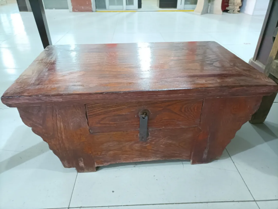 河北西部地区使用的榆木小闷柜,高只有35厘米,大约是放在火炕上的一种炕柜。